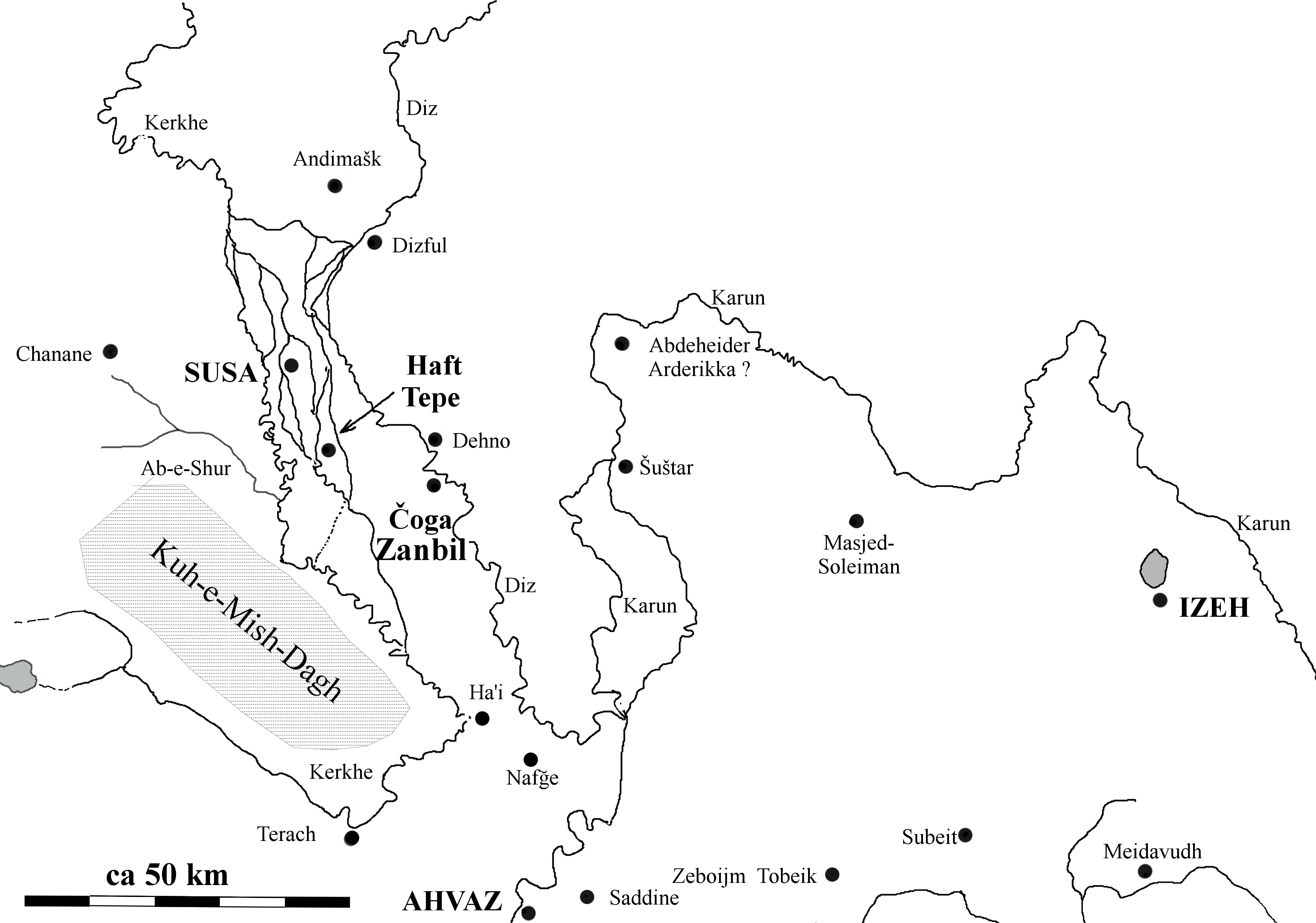 In Chuzistan gibt es noch heute die Stadt Andimašk, daraus wurde das biblische „Damaskus“; ganz in der Nähe soll der Ort Hoda gelegen haben. Die genaue Lage von Andimašk und Hoda war bei der Niederschrift nicht mehr bekannt, also wurde aus Andimašk in Chuzistan (Karte) das biblische Aram-Damaskus im heutigen Syrien, aus Hoda in Chuzistan wurde mit Hoba-Upe eine Dublette für Damaskus. Die beiden benachbarten Orte des Alten Testaments lassen sich nur hier in Chuzistan finden, in Syrien wären sie identisch. Das heutige Andimašk nördlich von Dizful wird in Mesopotamien schon um 2100 v. Chr. auf Tontafeln als Adamšakh (Metathese) erwähnt.